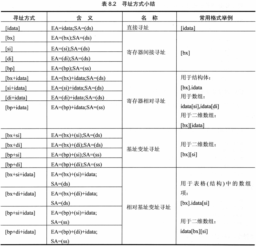 + 用偏移地址定位段中的内存单元